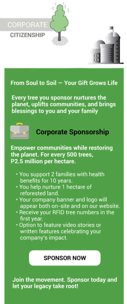 Bayanihan Na! Industrial Agri-Reforestation ProgramOnly P5000/tree donation for 10 yrs. gestation.